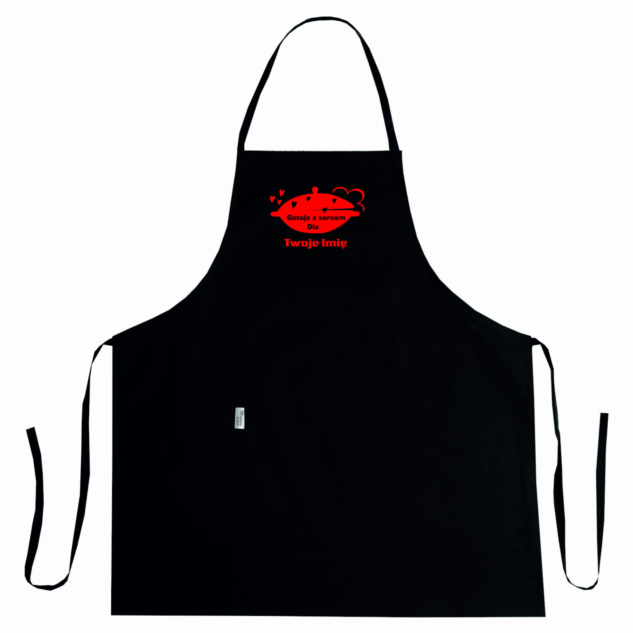 Köögi eesrätik südamega graafikaga „Südamega kokkaamine” + nimi või Sinu tekst