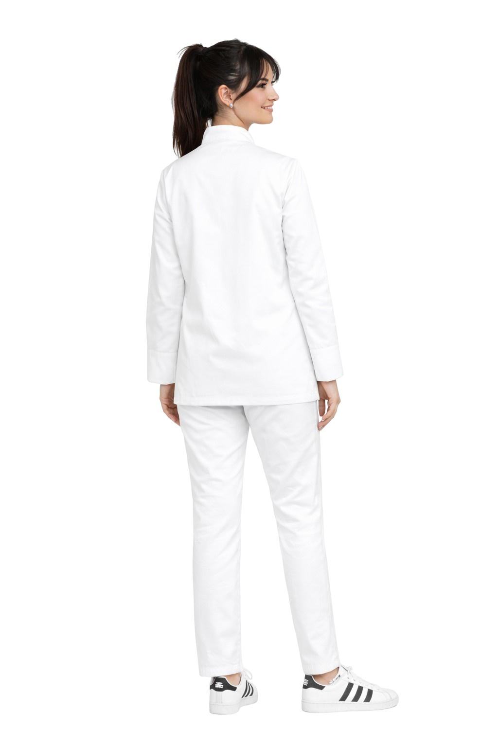 Daamide kokanduskomplekt, mis koosneb taljes kokajakist ja stiilsetest sigareti tüüpi pükstest, on ideaalne kombinatsioon professionaalsusest, mugavusest ja kaasaegsest stiilist. Komplekt on disainitud mõeldes naistele, kes töötavad toitlustuses, hindavad esteetikat ja mugavust pikaajalise töö ajal.